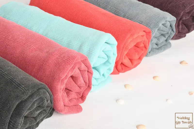 Dimension tolerances are between 1-2.5 centimeters due to the hand-weaving process. The towels can be personalized with embroidery, making them a suitable choice for wedding favors...