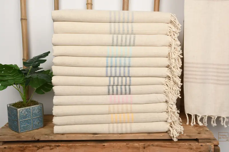 Turkish cotton is characterized by its soft, durable, and lightweight nature, ensuring comfort and versatility. The towels, measuring 70x40 inches or 180x100 cm, are made with a flat weave resulting in quick-drying properties and high absorbency. Weighing 280 grams, these towels exhibit exceptional hand-weaving tolerances of 1-2.5 cm.