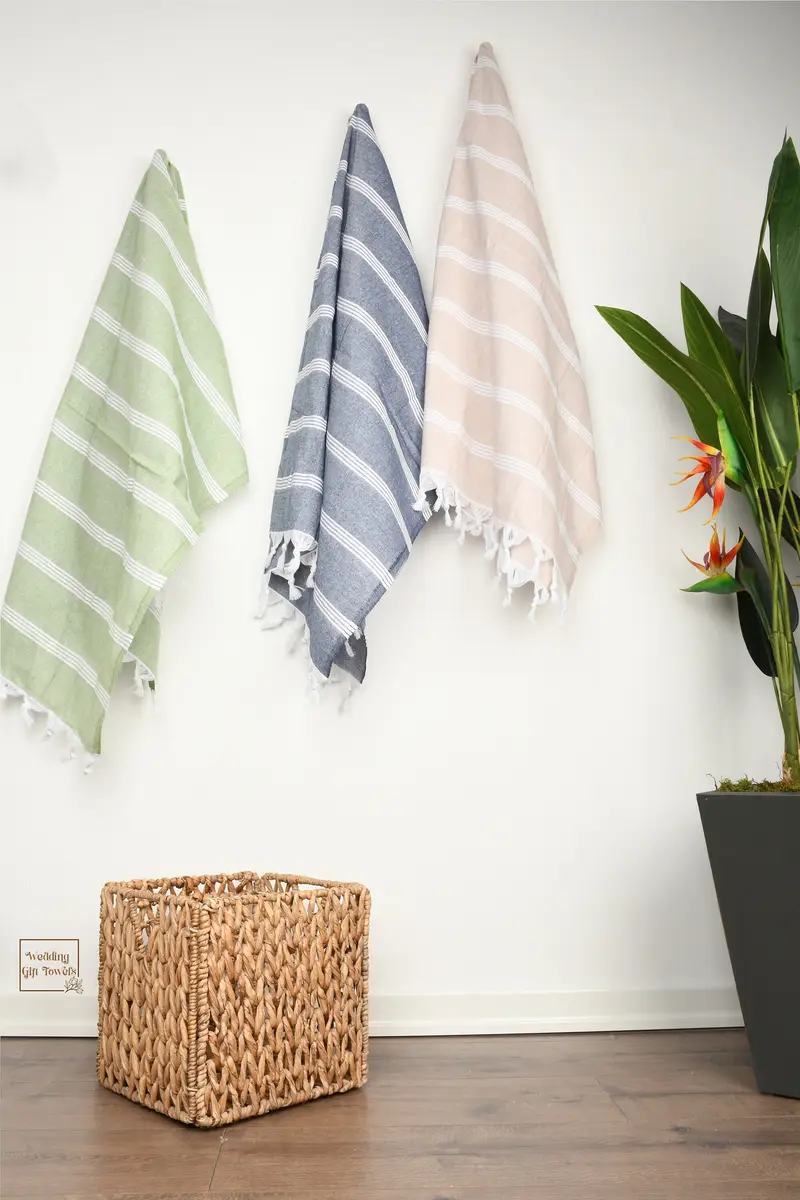 High-quality Turkish cotton towels, characterized by their soft texture and durable flat weave, ensuring exceptional absorbency and quick drying. These towels, weighing 240 grams and with dimensions of 69x30 inches or 175x75 cm, are meticulously hand-woven to within 1-2.5 cm tolerances. Each piece is customizable with embroidery, offering personalization for special occasions such as weddings and bachelorette parties. Orders are shipped promptly, with free express shipping for U.S. orders and international orders over $100. Returns are accepted...