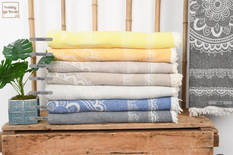 Crafted from 100% natural Turkish cotton, these blankets ensure breathability and absorbency. Each blanket features intricate hand-weaving tolerances ranging from 1 to 2.5 cm, resulting in unique textures and patterns. The blankets measure 87 by 79 inches or 200 by 220 cm, and weigh 900 grams, providing ample coverage and easy portability.