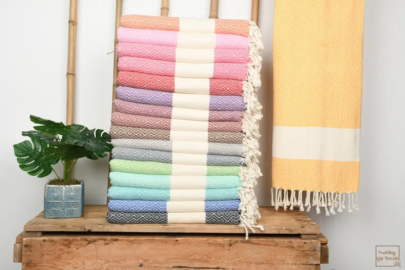 Each towel is meticulously woven from 100% natural Turkish cotton, ensuring exceptional softness and absorbency. Resulting in a lightweight and quick-drying towel, the fiber composition guarantees comfort and functionality. Dimensions are specified at 67 by 38 inches, translating to 170 by 95 centimeters, with a hand-weaving tolerance of 1-2.5 centimeters.