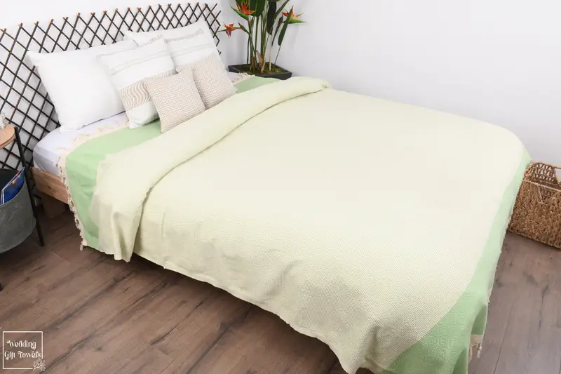 Composed entirely of Turkish cotton, the blanket ensures superior absorbency and soft texture, free from harmful chemicals. Measuring 103x79 inches or 260x200 cm, the blanket weighs 1300 grams, ensuring comfort while remaining lightweight. Its hand-weaving process allows for minor tolerances of 1-2.5 cm.